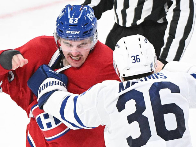 Watch as Toronto Maple Leafs defenceman Dakota Mermis drops the gloves with Montreal Canadiens forward Florian Xhekaj during the third period of his NHL debut.